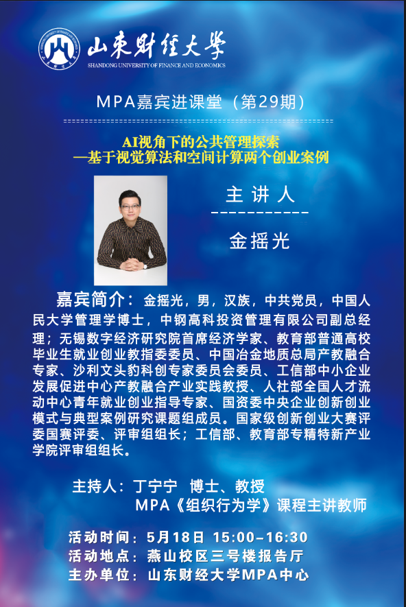 MPA嘉賓進課堂第29期:AI視角下的公共管理探索——基于視覺算法和空間計算兩個創業案例