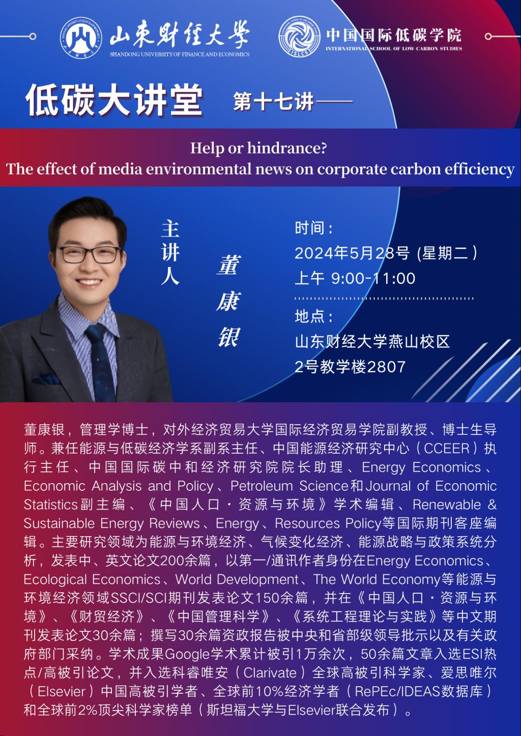 低碳大講堂第十七講:Help or hindrance? The effect of media environmental news on corporate carbon efficiency