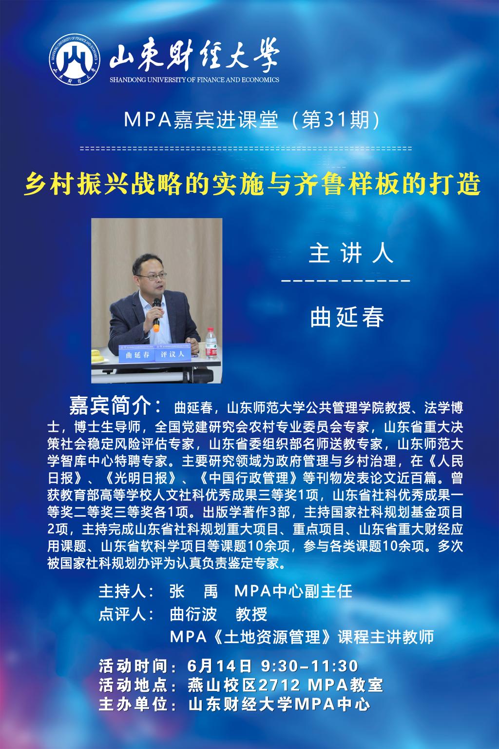 MPA嘉賓進課堂(第31期):鄉村振興戰略的實施與齊魯樣板的打造