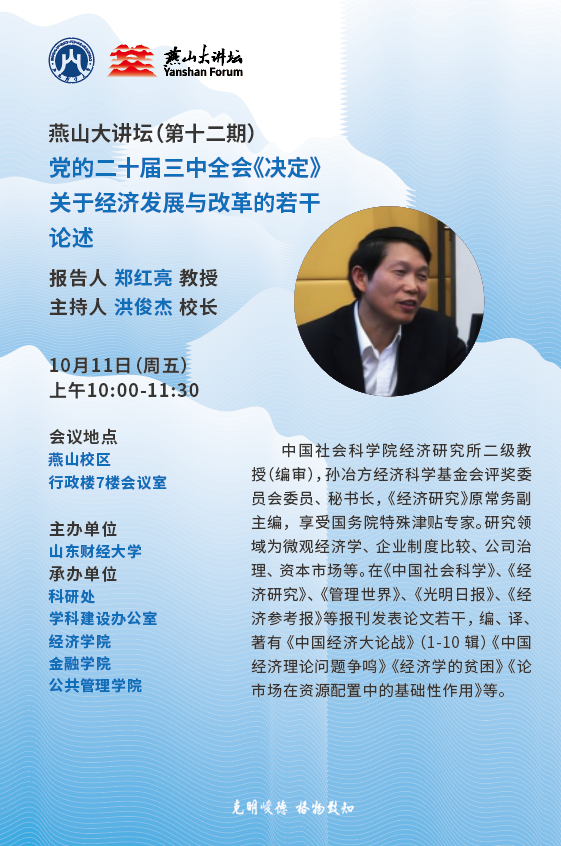 燕山大講壇(第十二期):黨的二十屆三中全會(huì)《決定》關(guān)于經(jīng)濟(jì)發(fā)展與改革的若干論述