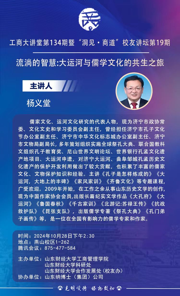 工商大講堂第134期—流淌的智慧:大運河與儒學文化的共生之旅