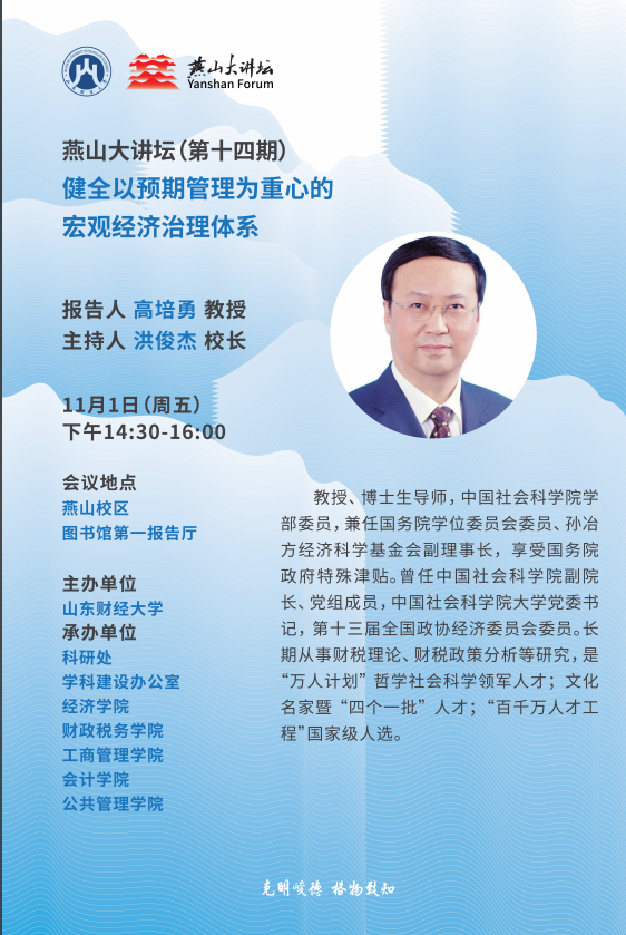 燕山大講壇(第十四期):健全以預期管理為重心的宏觀經濟治理體系