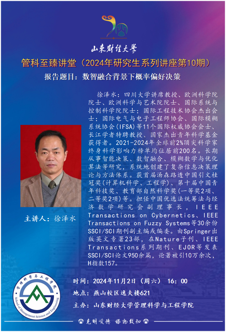 管科至臻講堂預告(2024年第10期)—數智融合背景下概率偏好決策