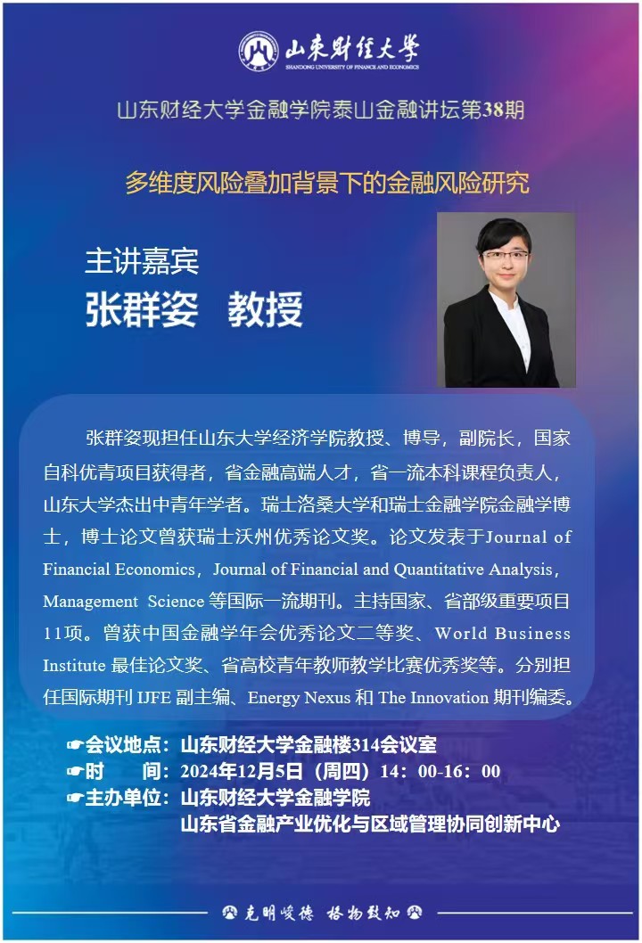 金融學院泰山金融講壇(第38期):多維度風險疊加背景下的金融風險研究