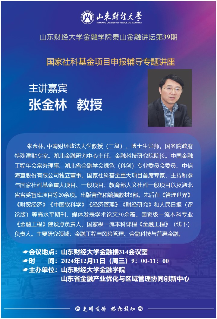 金融學院泰山金融講壇第39期:國家社科基金項目申報輔導專題講座