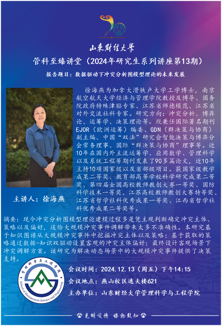 管科至臻講堂預告(2024年第13期)—數據驅動下沖突分析圖模型理論的未來發展