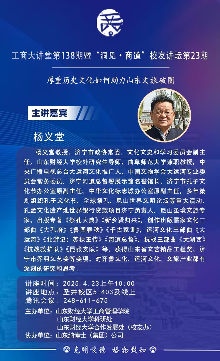 工商大講堂(第138期)—厚重歷史文化如何助力山東文旅破圈