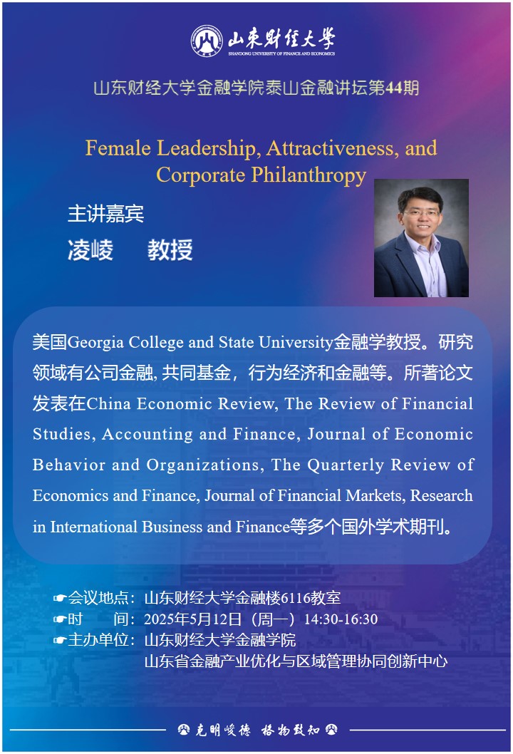 泰山金融講壇(第44期)—Female Leadership, Attractiveness, and Corporate Philanthropy