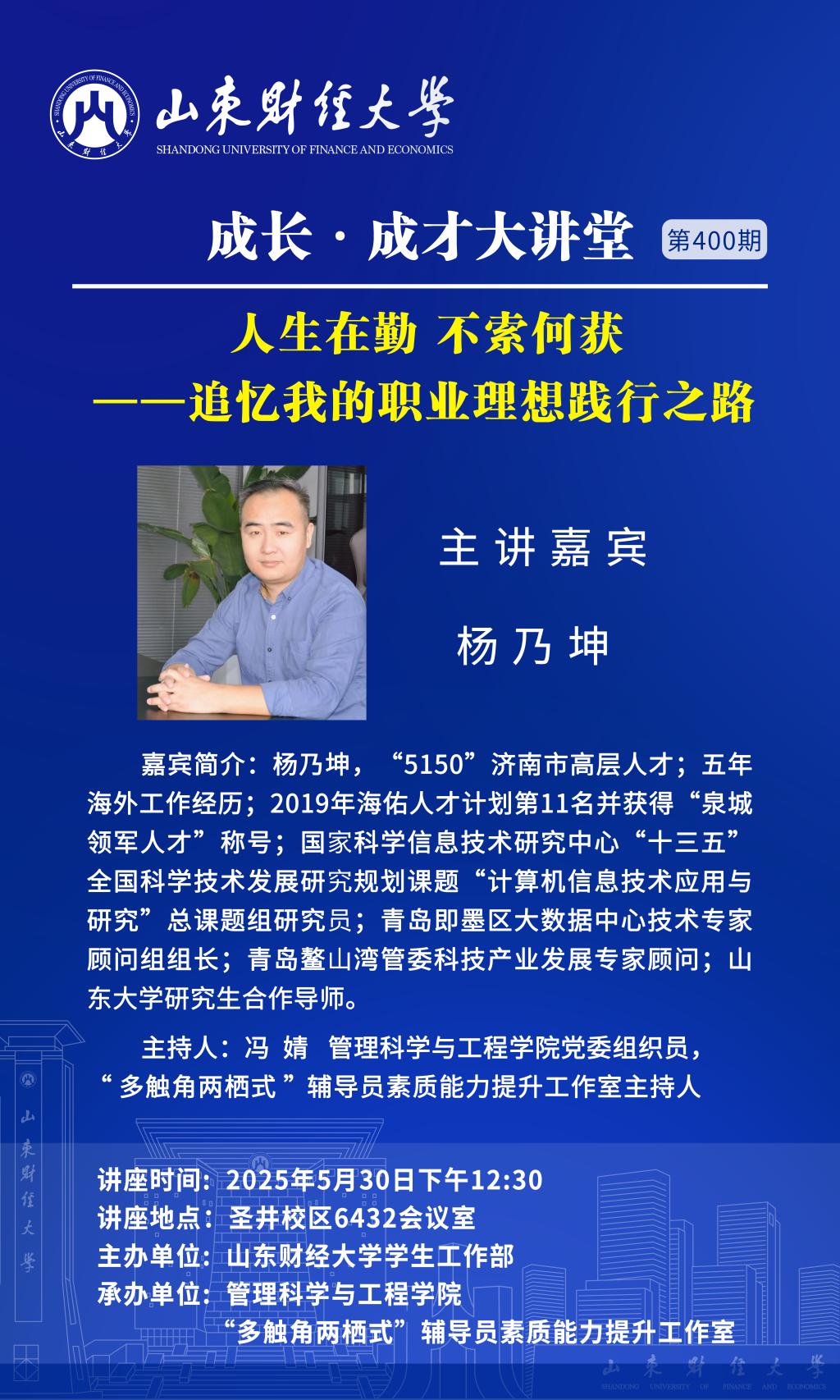 成長·成才大講堂(第400期):人生在勤 不索何獲——追憶我的職業理想踐行之路